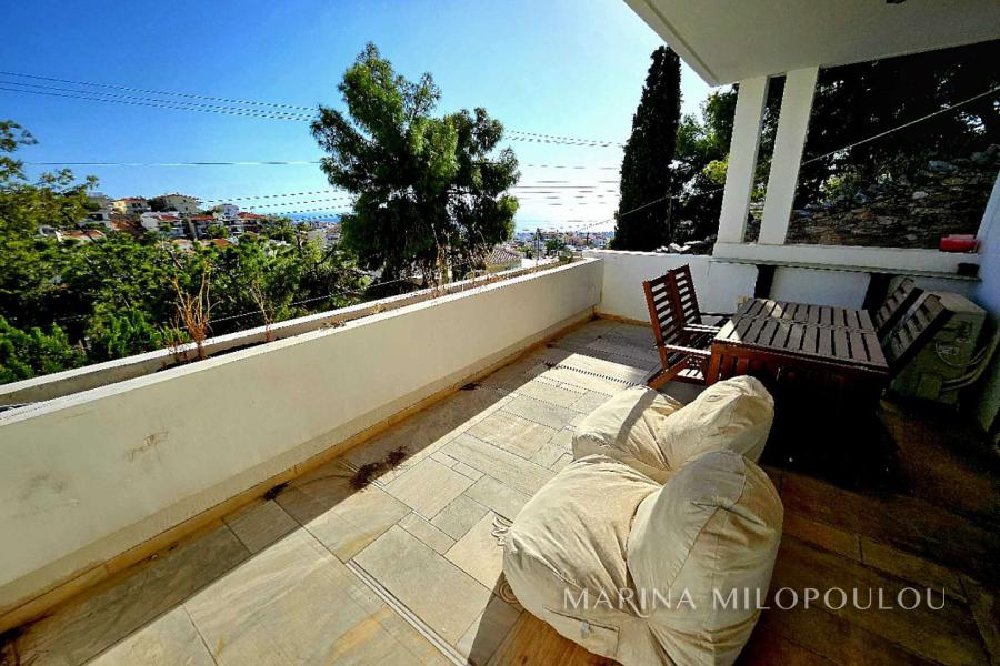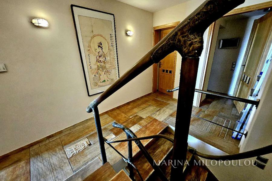 Η κατοικία διαθέτει δάπεδα, οροφές, παράθυρα και πόρτες, από ξύλο δεσποτάκι, διπλά τζάμια, τεχνοτροπίες, θέρμανση πετρελαίου, συναγερμό, 3 κλειστές θέσεις στάθμευσης μεγάλες βεράντες με θέα θάλασσα από όλα τα επίπεδα. Τιμή ζώνης 2500€