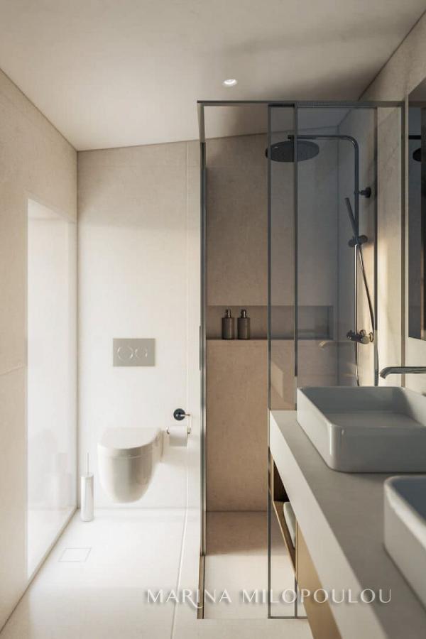 - 3ος όροφος, 97 τμ, χώρος υποδοχής διπλού ύψους - τραπεζαρία, ενιαία κουζίνα, 1 master υ/δ, 1 wc, αποθηκευτικός χώρος/ laundry 4,5 τμ, βεράντα προσόψεως και στο υπνοδωμάτιο.