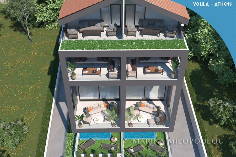 Εξαιρετική θέση με ησυχία και πολύ πράσινο, σε απόσταση 1 χλμ από την πλατεία της Βούλας, 3 χλμ από τις οργανωμένες παραλίες της περιοχής, 7 χλμ από το Four Seasons Astir Hotel και το Μητροπολιτικό Πάρκο Ελληνικού και 20 χλμ από το αεροδρόμιο. Εκτιμώμενη παράδοση Δεκέμβριος του 2026.