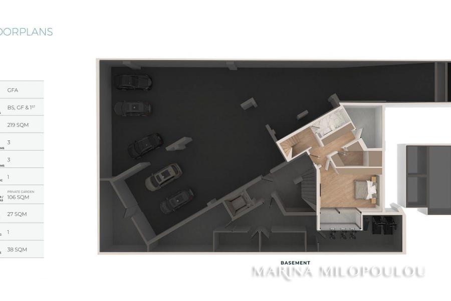 - Υπόγειο, 71 τμ, με φυσικό φωτισμό από cour-anglaise, ένα μεγάλο Master υ/δ με walk-in closet.