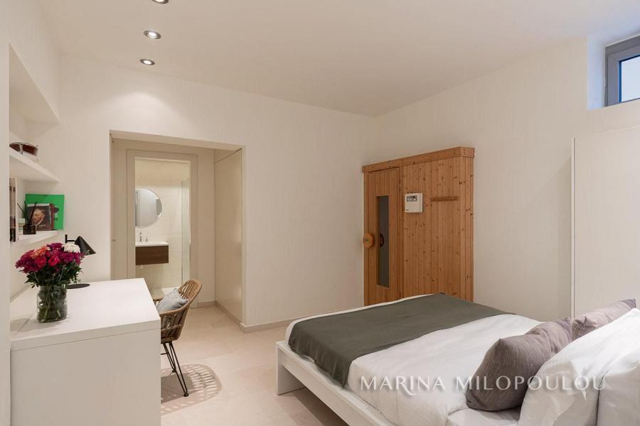 - Στο υπόγειο, υπάρχει 1 master υ/δ με sauna - tv room / gym, αποθήκη, λεβητοστάσιο και το garage με 2 θέσεις στάθμευσης Το επίπεδο αυτό έχει και ανεξάρτητη είσοδο.