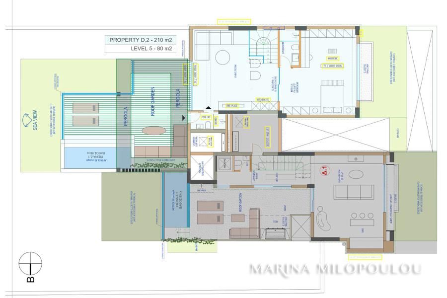 - 5th floor, 80 sqm, 1 large master bedroom, 1 additional bathroom, living room (Playroom), direct access to the sundeck (60 sqm) with the pool (depth 80 cm), with an impressive view of the sea and the whole region.
