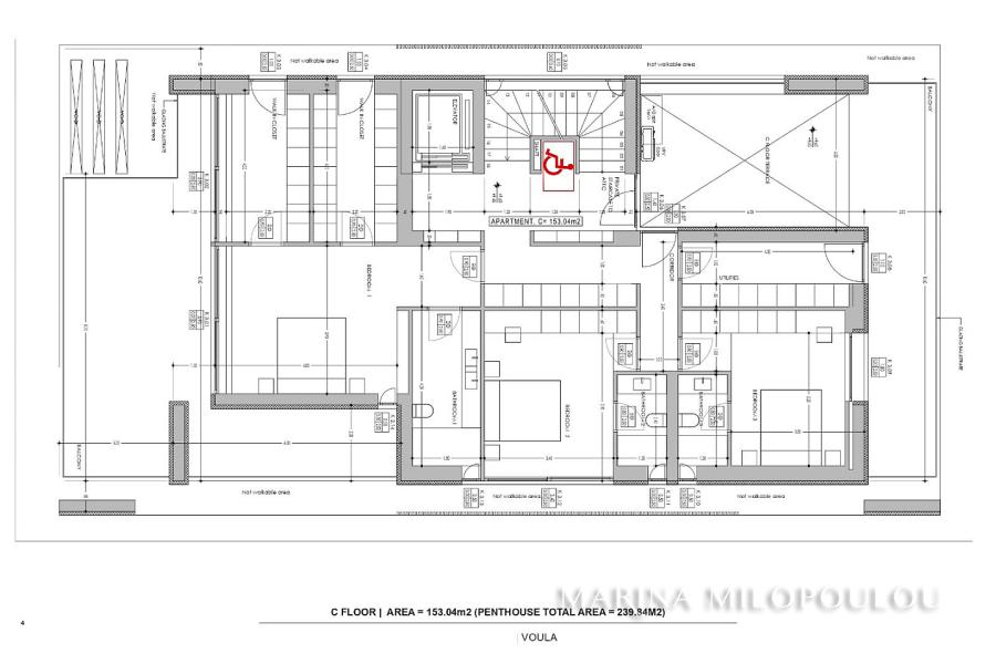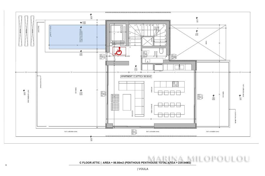 - 4th floor, 87 sq m, reception - dining area, open plan kitchen, 1 wc, large West-facing veranda with 14.5 sq m swimming pool and terrace on the East side of the apartment.