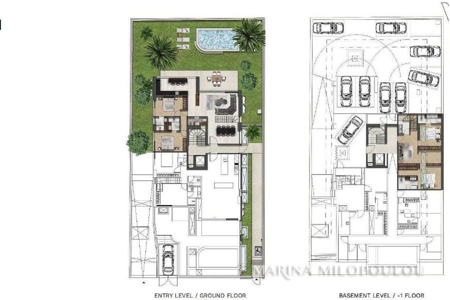 VOULA — At the border with Glyfada, in a building under construction, maisonette on Ground Floor – Basement, with a total area of 188.5 sqm, at the backside of the building, featuring a private garden and a heated swimming pool.