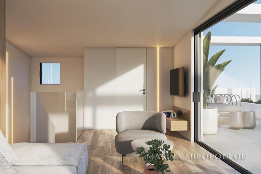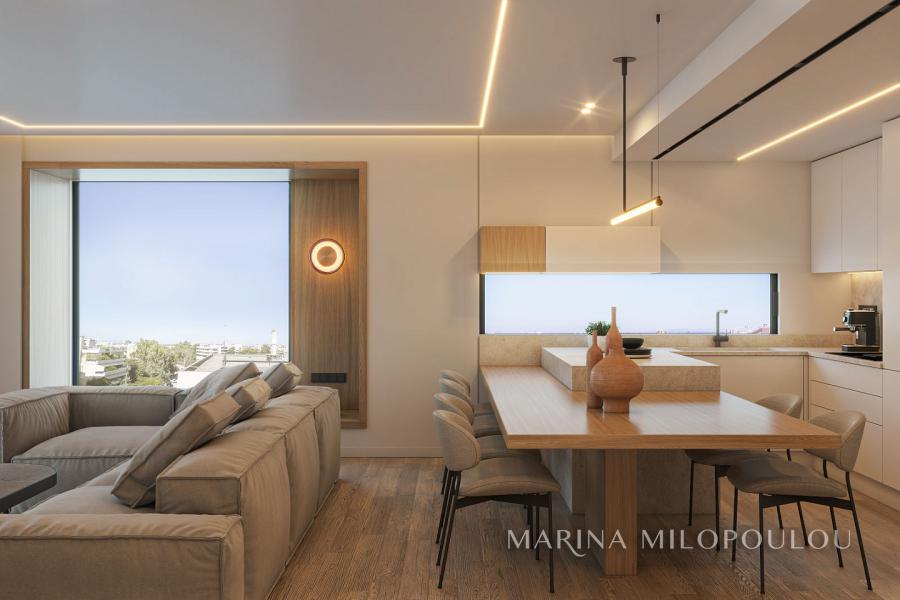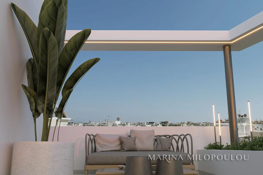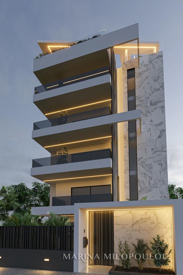 GLYFADA – close to the center, in a building under construction, a Penthouse maisonette on the 4th–5th floors, with a total area of 160 sq.m., featuring a private swimming pool and sea view.
